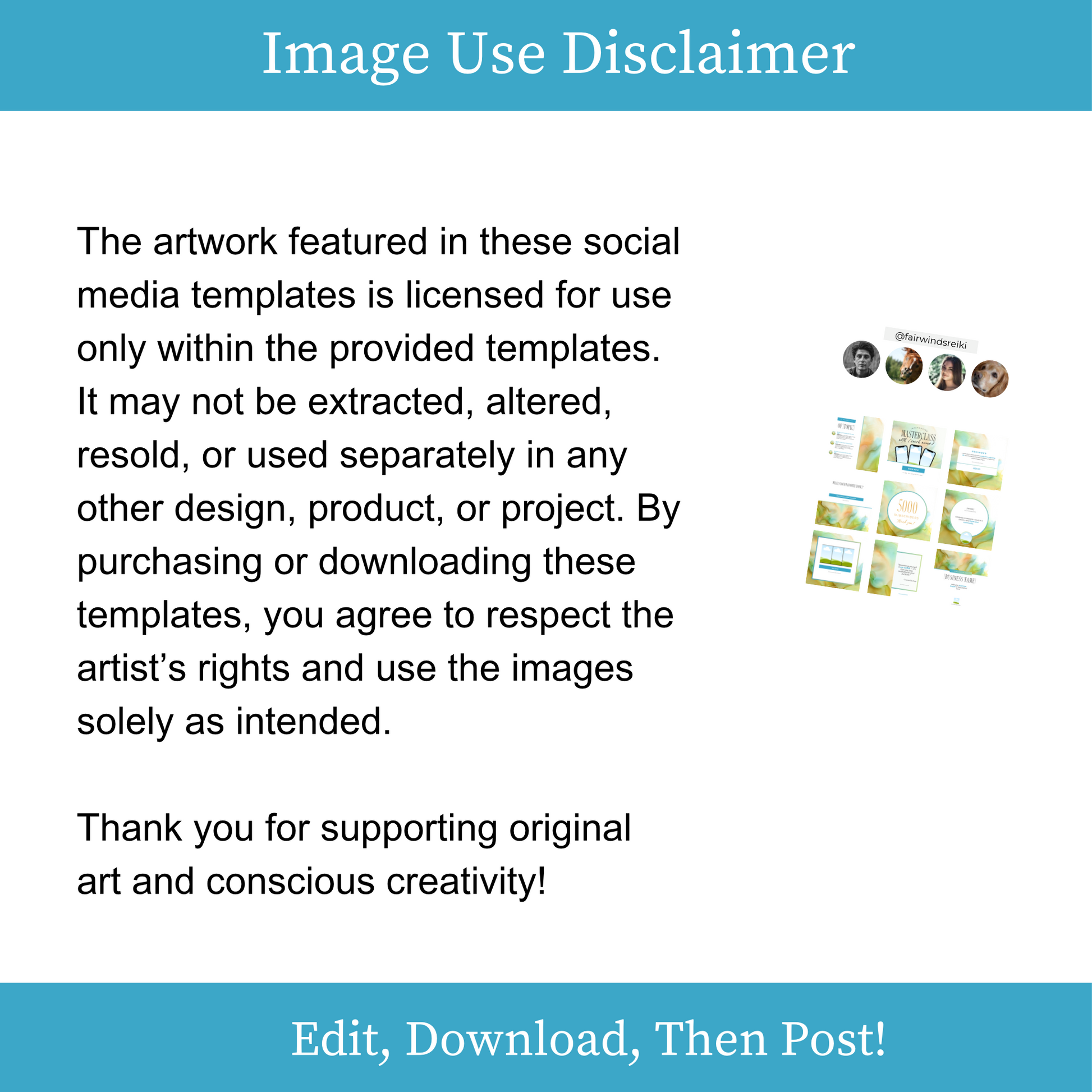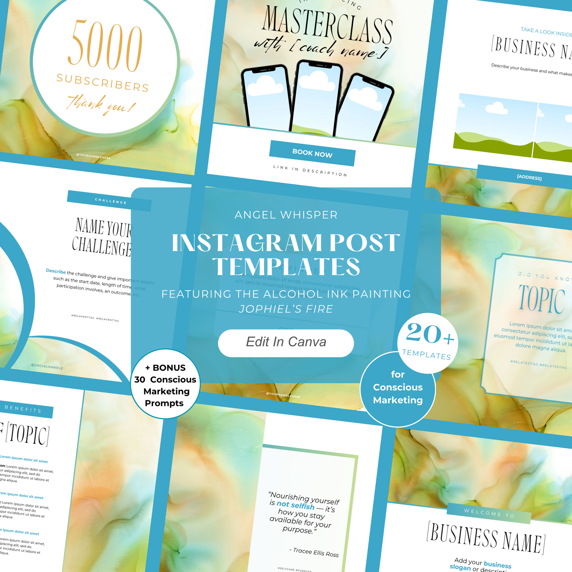 - One Signature Painting – Each post template features the alcohol ink painting Jophiel’s Fire in a different layout to create a cohesive, on-brand look with natural beauty.