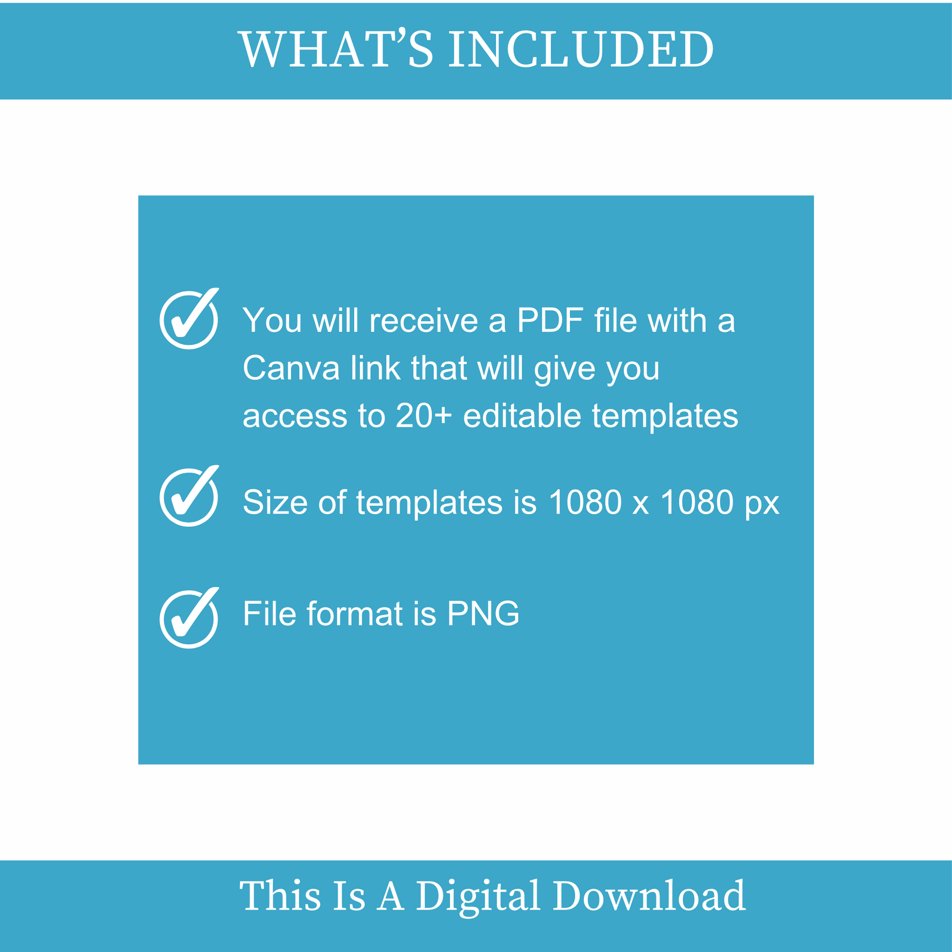 - Fully Editable in Canva – Customize text, fonts, and colors (1080x1080 px PNG files)