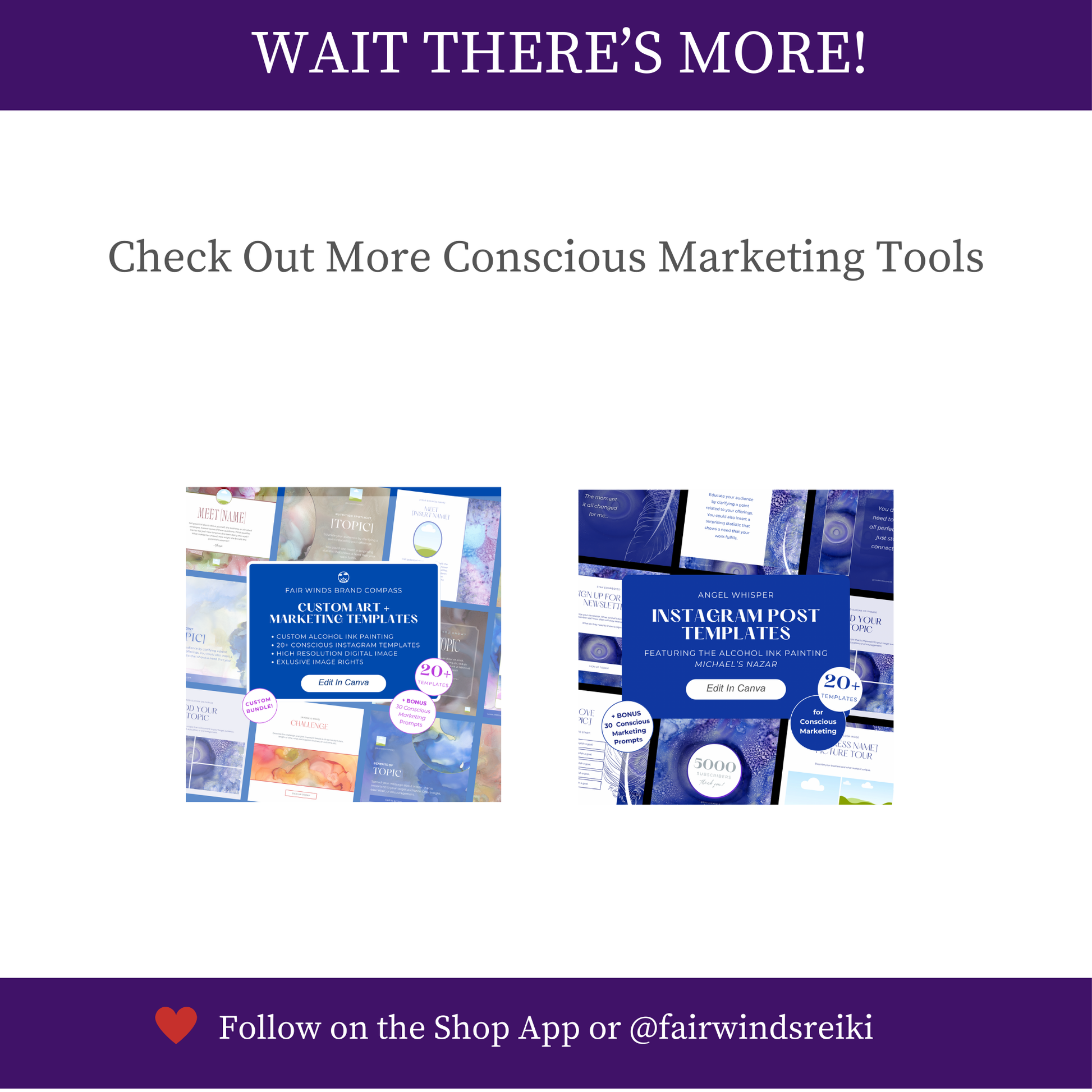 - Strategic Layouts – 25 IG post templates aligned with the 5 Stages of Conscious Marketing: Attract, Nurture, Engage, Invite, and Support.